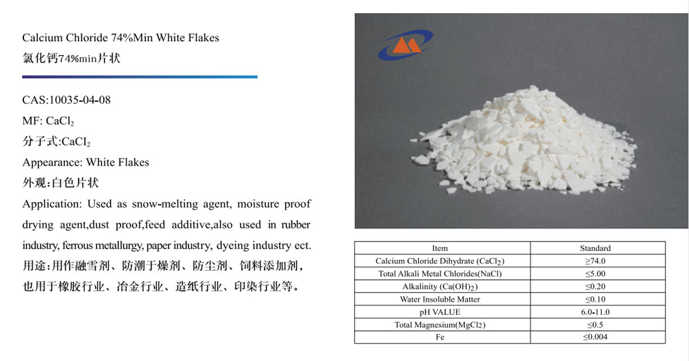 Calcium Chloride 74%Min White Flakes