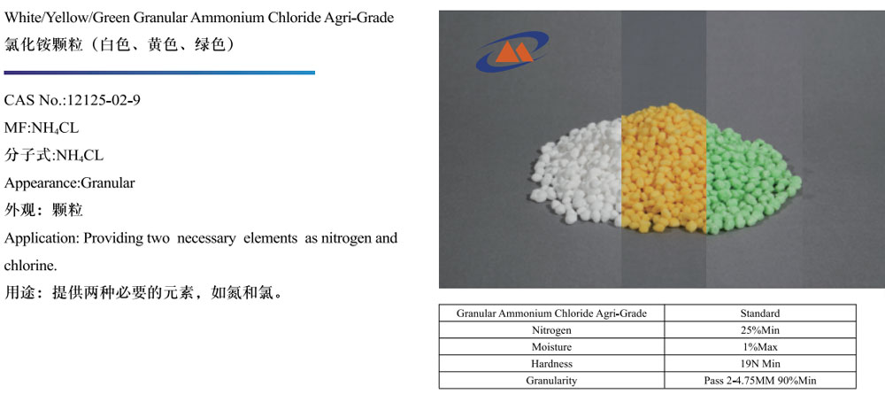 White/Yellow/Green Granular Ammonium Chloride Agri-Grade
